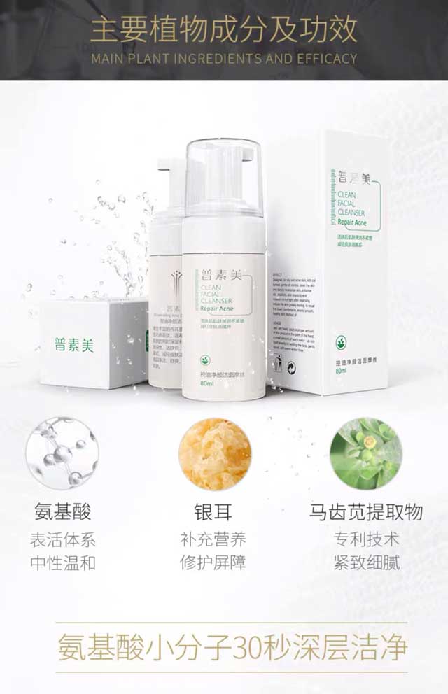 妆 - 普素美控油净颜洁面摩丝 氨基酸洁面